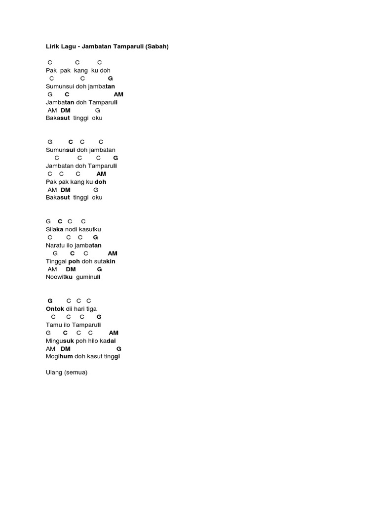 Lirik Lagu Tempatan Pdf Document. Lirik Lagu Jambatan Doh Tamparuli - Justin Lusah Pak. TAMPARULI SABAH is with Loretta Jarita Gimbun.